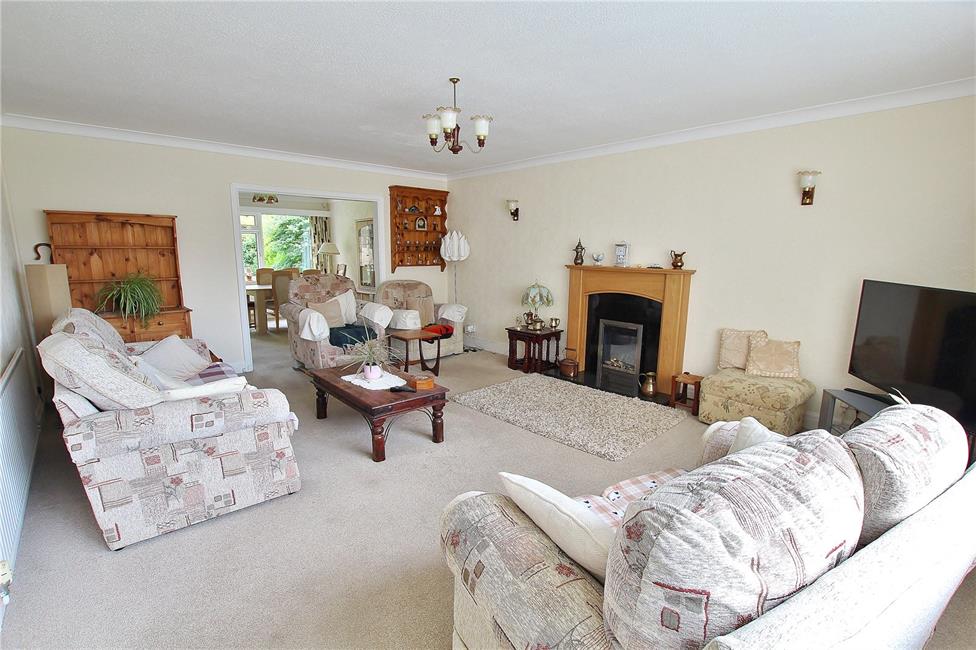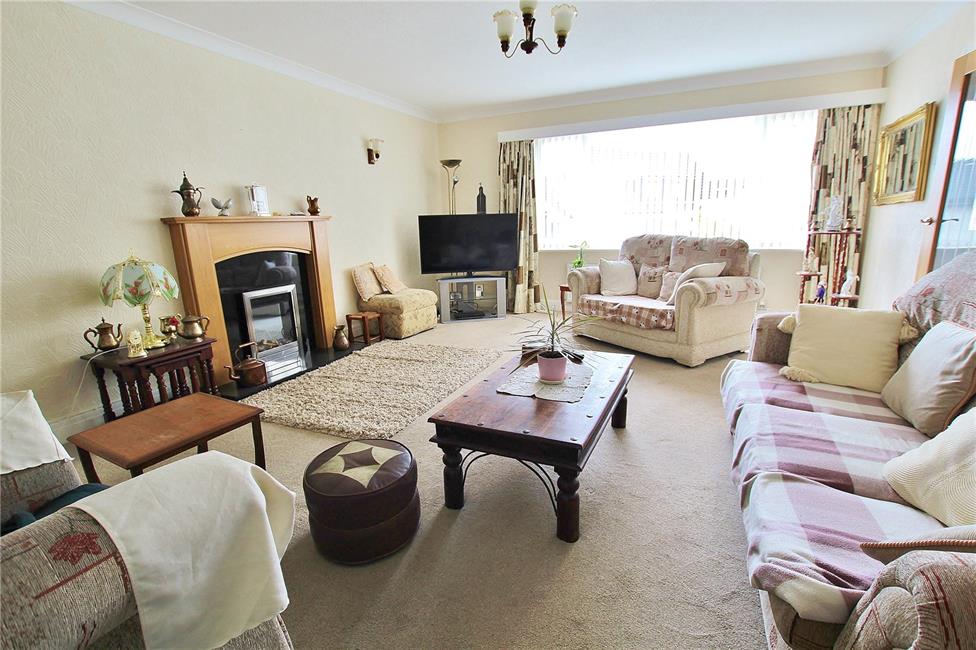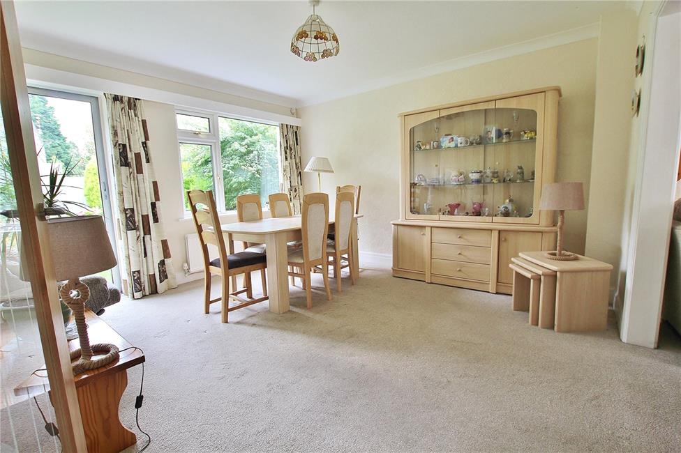 Impressive in size with a large window overlooking the front garden and quiet cul-de-sac, two radiators, feature fireplace with a timber surround with log effect electric fire and marble hearth with matching back, Sky point, coved ceiling, square opening into dining room.