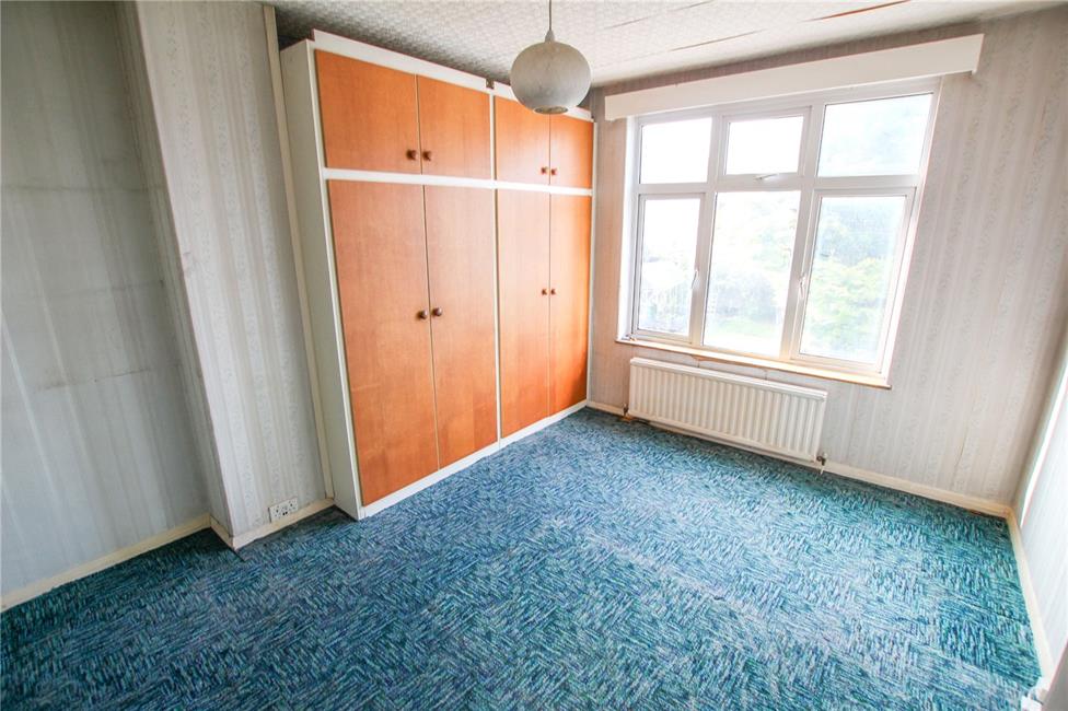 Overlooking the rear garden, range of fitted wardrobes to one side, double panelled radiator.