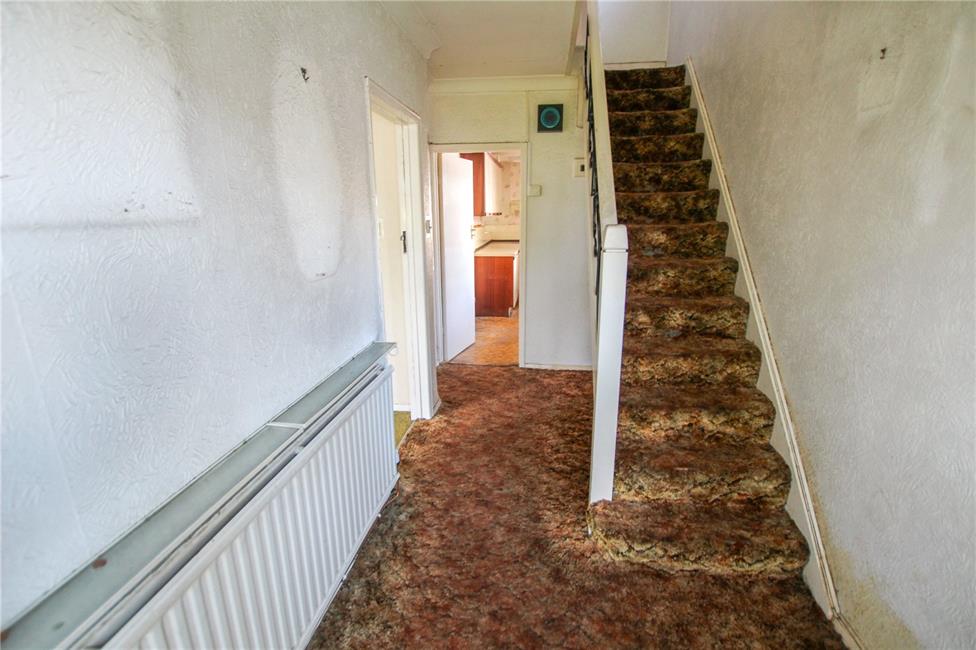 Approached via a fully glazed door with matching side screens, leading onto a central hallway, single flight staircase to first floor, window to side, double panelled radiator.