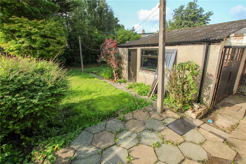 Semi-detached single garage with twin timber access doors, double glazed door and window to side. It should be noted the corrugated roof covering may obtain asbestos. Interested parties should seek advice from a specialist company prior to making a transactional decision.