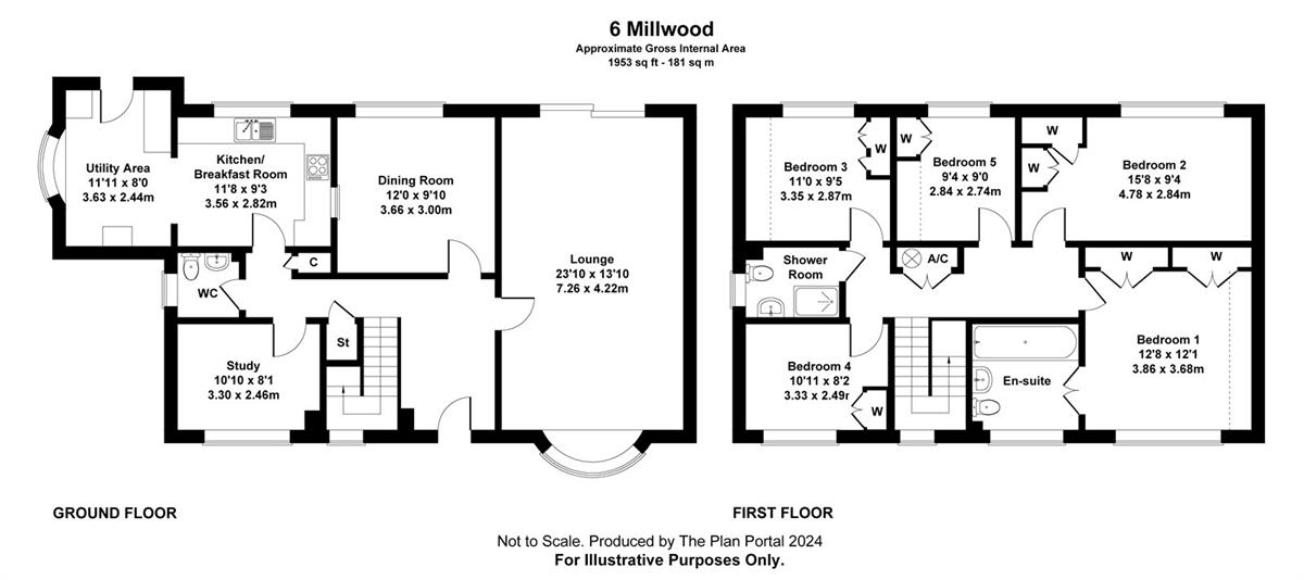 Central hallway, 23ft bay fronted lounge, dining room, study, fitted kitchen/breakfast room, a good size utility room, cloakroom, 5 bedrooms all with fitted wardrobes, en suite bathroom to bedroom 1, plus a family shower room. uPVC double glazing, floor vented heating system.