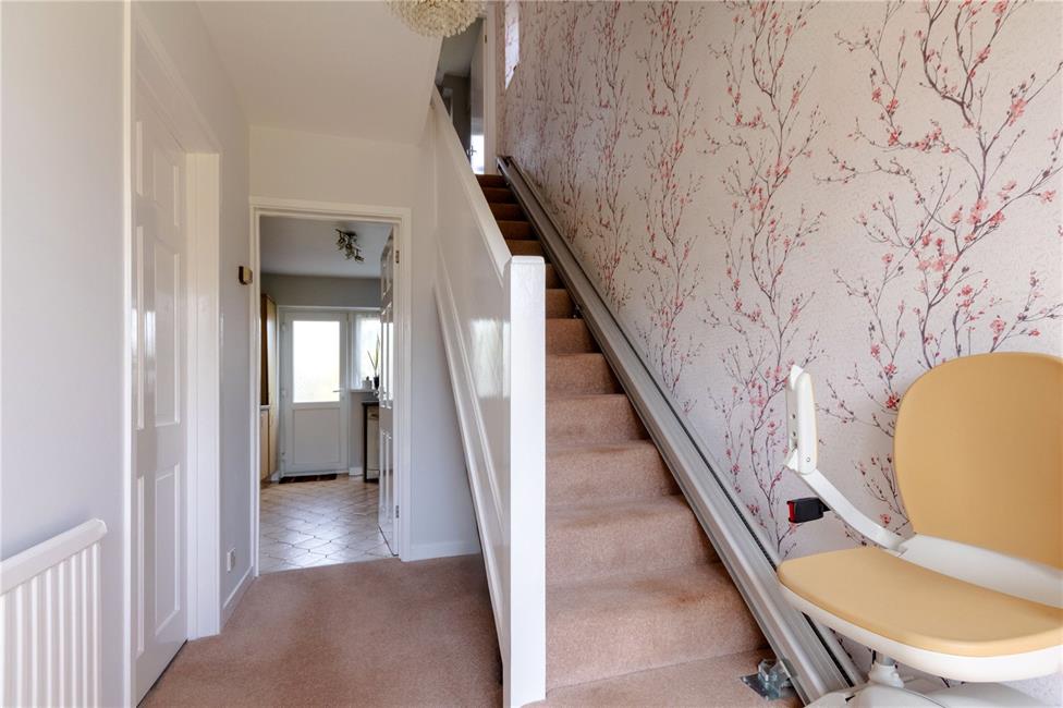 Approached via a covered porch and UPVC entrance door with glaze insets, matching side panel, leading onto a central hallway, single flight staircase to first floor landing, radiator.