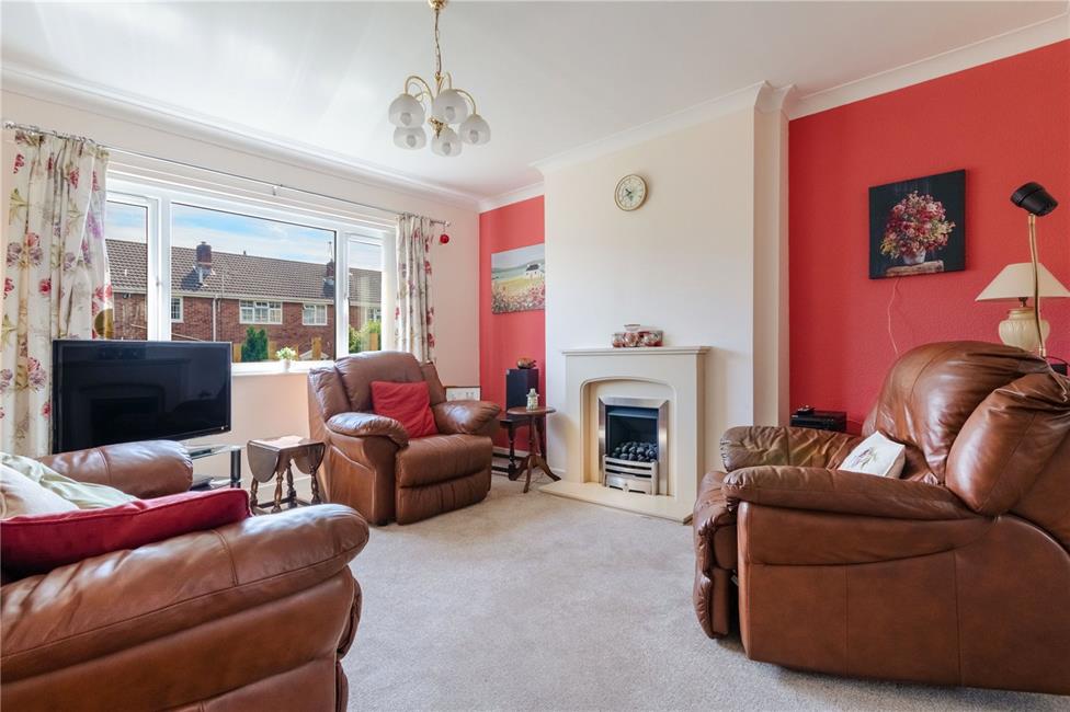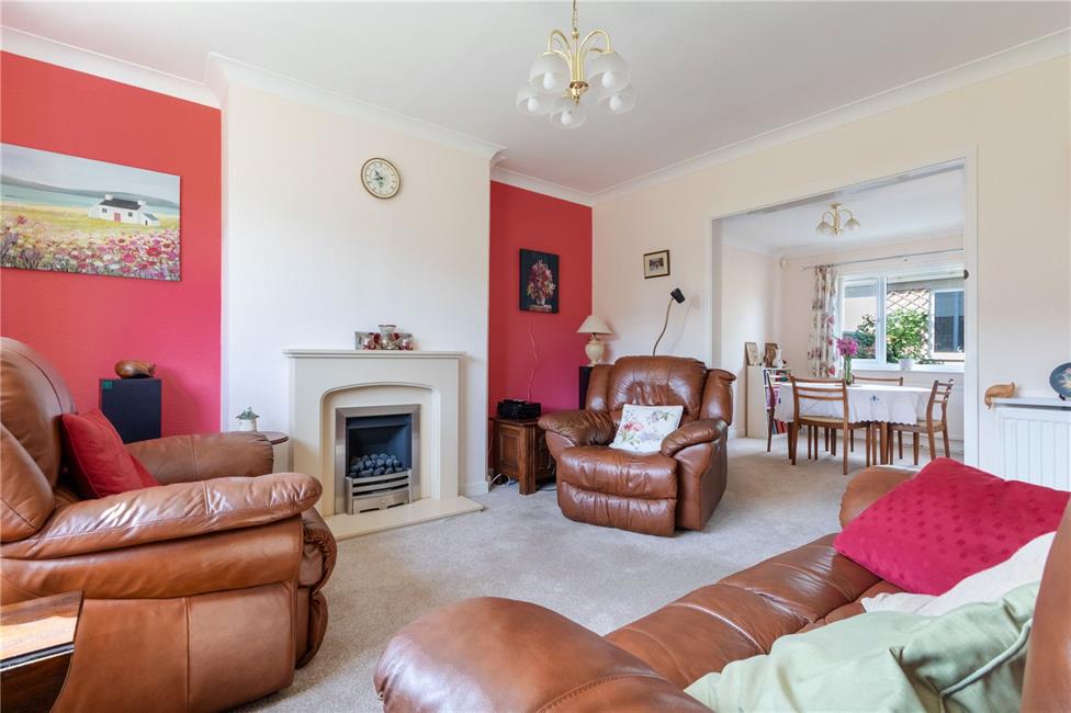 Large window overlooking the established front garden, feature stone fire place with a coal effect electric fire, coved ceilings, radiator, opening to