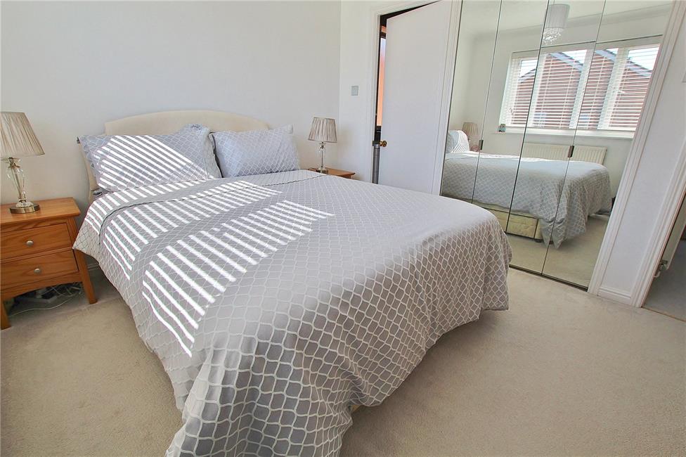 Aspect to rear, quality fitted wardrobe with sliding mirrored front, hanging rail and shelving, coved ceiling, radiator.