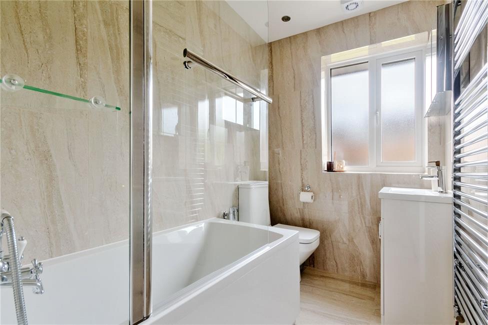 Entrance hall, lounge with feature fire place and patio doors, bay fronted dining room, sitting room, contemporary fitted kitchen, cloakroom/WC, four bedrooms, ensuite shower room to bedroom 1, plus a family bathroom with shower (both refurbished 2024). Majority recently renewed uPVC double glazed windows (installed 2022), gas central heating via Valiant combi boiler. Fitted wardrobes to bedrooms 1-3.