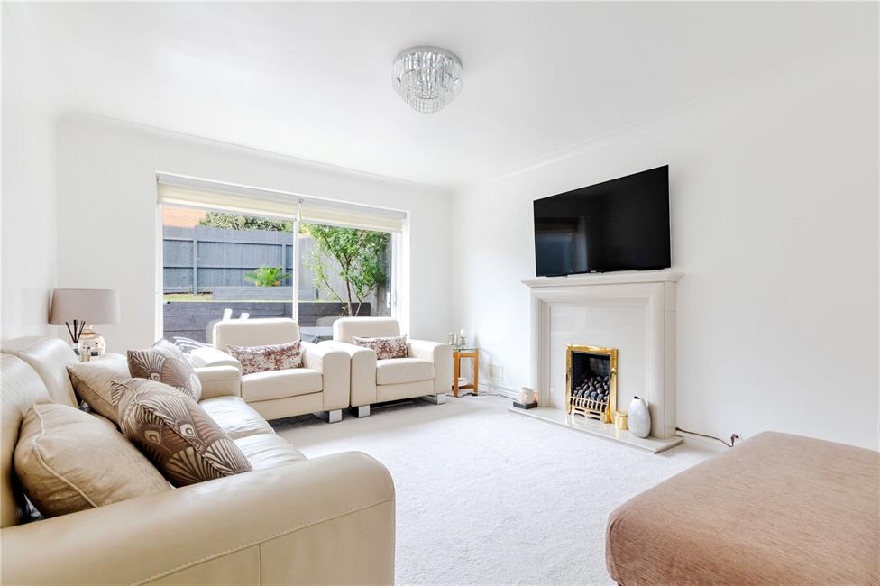 Sliding patio doors onto the well-manicured rear garden, contemporary stone fire surround with matching back and hearth, coal effect gas fire, coved ceilings, radiator.