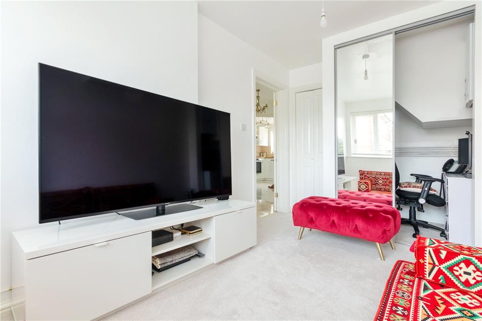 Aspect to front, built in cupboard with shelving, further built in storage with sliding mirror fronts, currently utilised as a study area and housing the Valiant gas central heating boiler.
