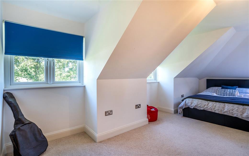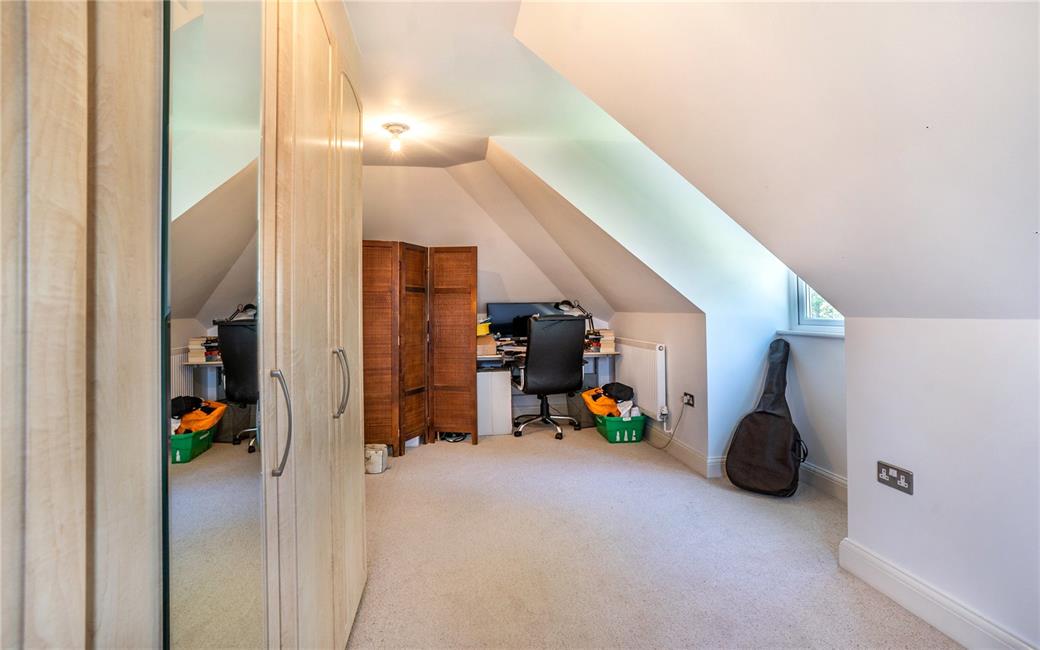 Dormer window overlooking the entrance approached, panelled radiator, fitted wardrobes to one side.