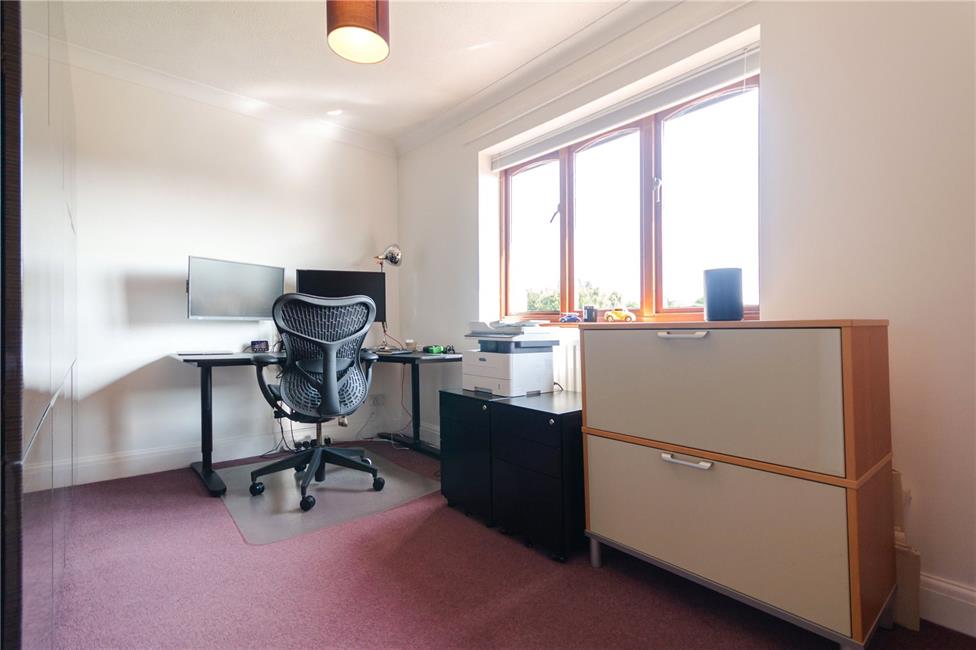 Overlooking the entrance approach and enjoying a wide vista to the surrounding area, built-in double wardrobe, and panelled radiator.
