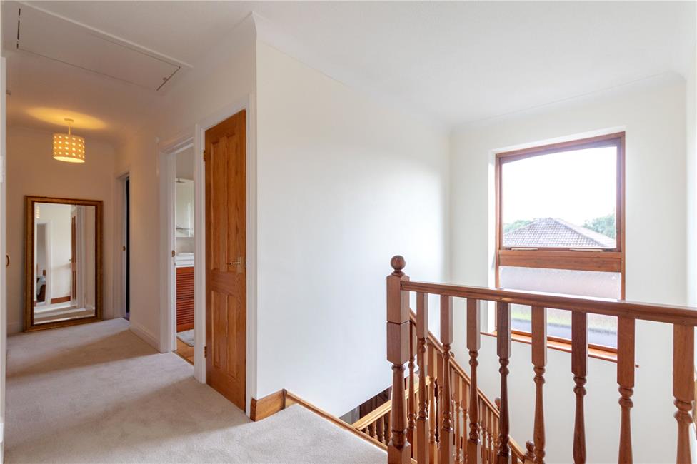 Approached via an easy rising full turning stair case with hardwood newel post and bannister, leading onto a wide central landing area, access to loft with ladder and lighting, central boarding, airing cupboard housing hot water cylinder with shelving, additional deep linen cupboard with shelving.