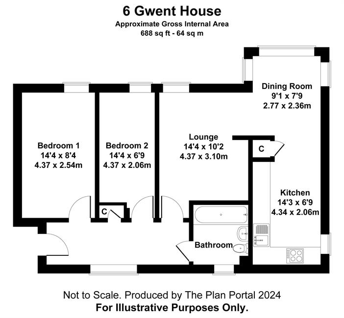 Bedroom 2 14'4" (4.37m) x 6'9" (2.06m) overall