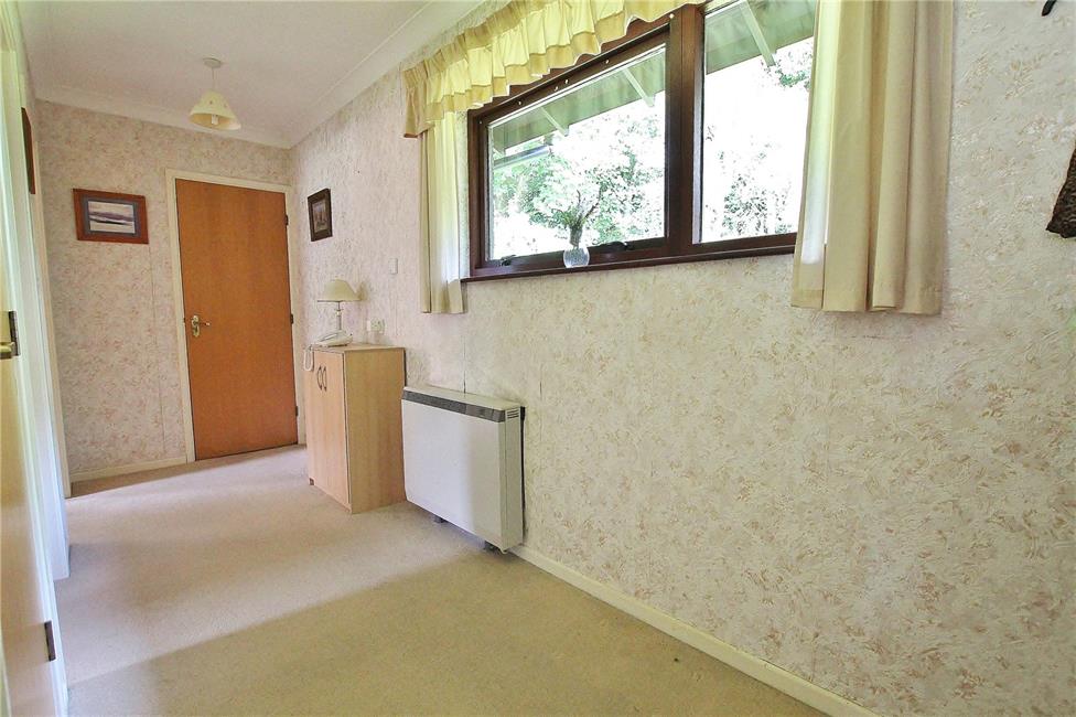 A generous wide bright entrance hallway overlooking the enclosed rear communal garden, electric storage heater, loft access, large cloakroom with shelving, telephone point.