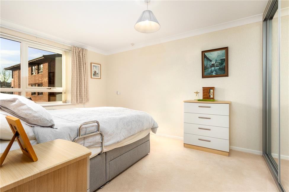 Overlooking the beautifully maintained communal grounds, electric radiator, TV point, built-in triple wardrobes with mirrored sliding doors, hanging rails and shelving.