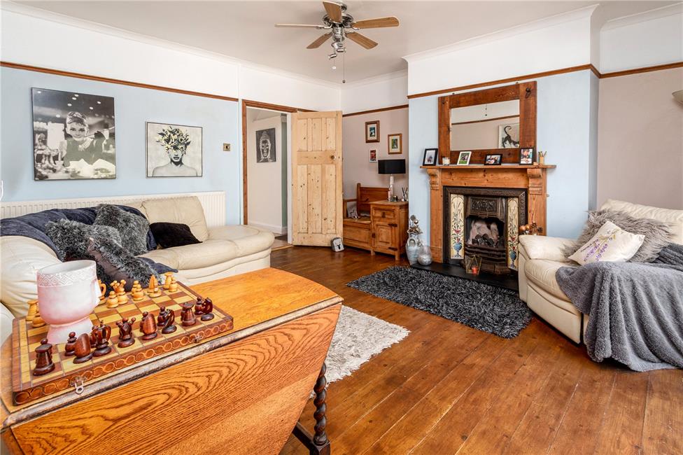 Overlooking the attractive front garden, feature contemporary style fire surround with matching mantel and hearth, gas point, oak flooring, panelled radiator.