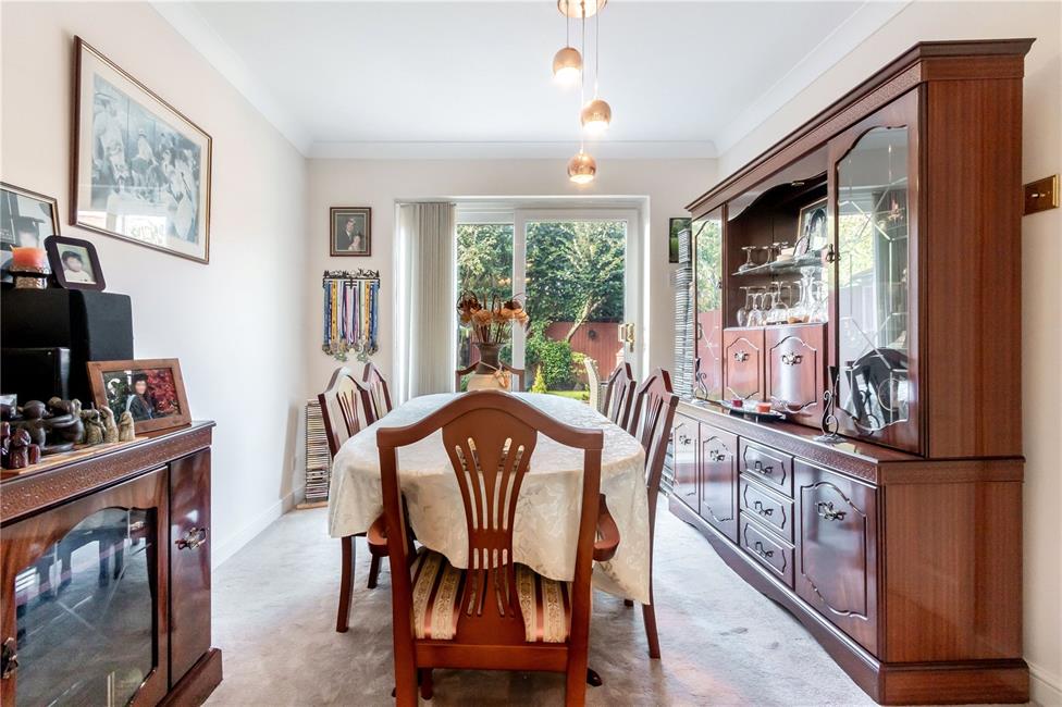 Small paned glazed twin doors to lounge, uPVC sliding patio doors onto the well-manicured rear garden, ample space for a family dining table, radiator, coved ceiling.