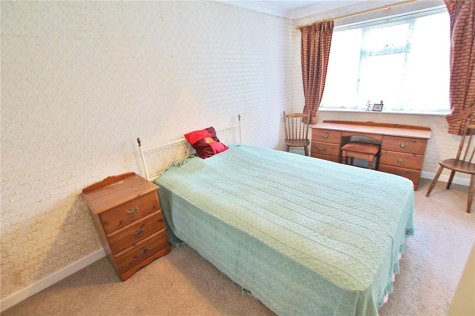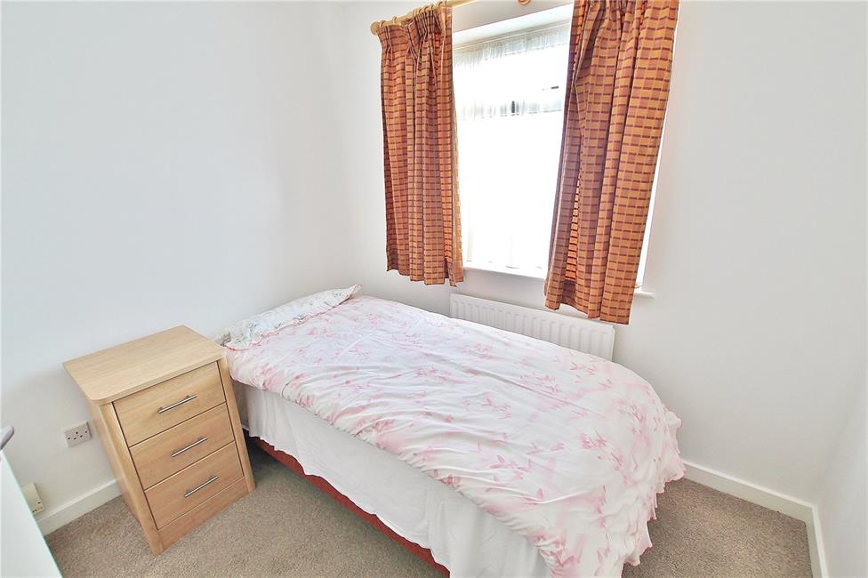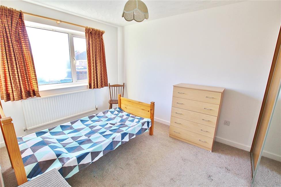 Overlooking the entrance approach, radiator, range of fitted wardrobes to one side.