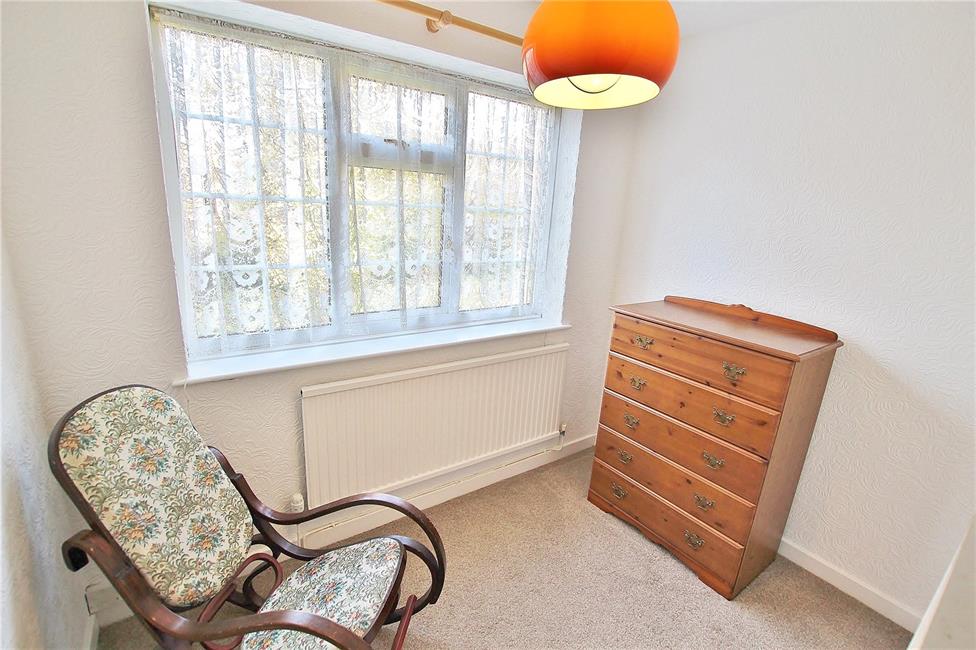 Overlooking the rear garden, range of wardrobes along one complete side, radiator.