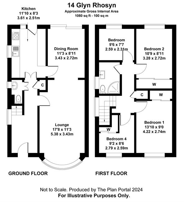Bedroom 2 10'9" (3.28m) x 8'11" (2.72m)