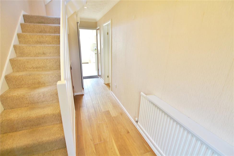 External porch cover. Approach via UPVC front door with double glazing insert to upper part, leading onto a wide central hallway with quarter turning staircase to first floor, useful under stairs storage cupboard, radiator, quality flooring. Deep built-in store/hanging coat cupboard.