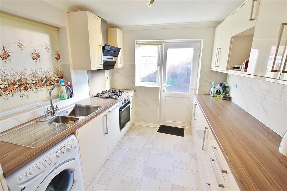 Well-appointed along two sides, range of quality base and eye level cupboards with pelmets, inset one and a half bowl sink and drainer with mixer tap, inset four ring Zanussi gas hob with oven below, AEG induction hood above, integrated dishwasher with matching front, integrated fridge with matching front, integrated under the counter freezer with matching front, plumbing for automatic washing machine, window to side, ceramic wall tiling to work top areas, UPVC double glazed door and window leading to the rear garden.