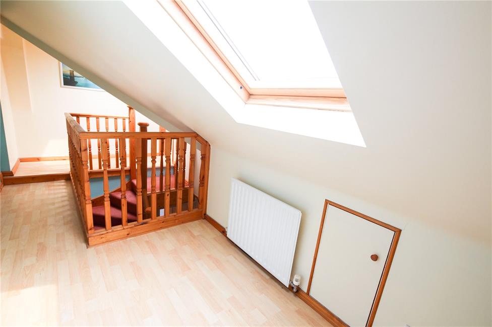 Approached by an easy rising full turning staircase with newel post and banister, large landing area ideal for home study desk 11'5" x 6'5", with access to storage, panelled radiator.