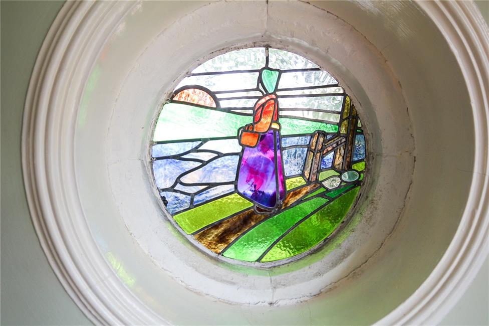 Approached by small paned fully glazed twin doors leading onto a wide central hallway with full turning staircase to first floor level, newel post and spindle banister, storage cupboard under stairs recess, wall plate rack, double panelled radiator, woodblock flooring with border, original leaded light window to side.