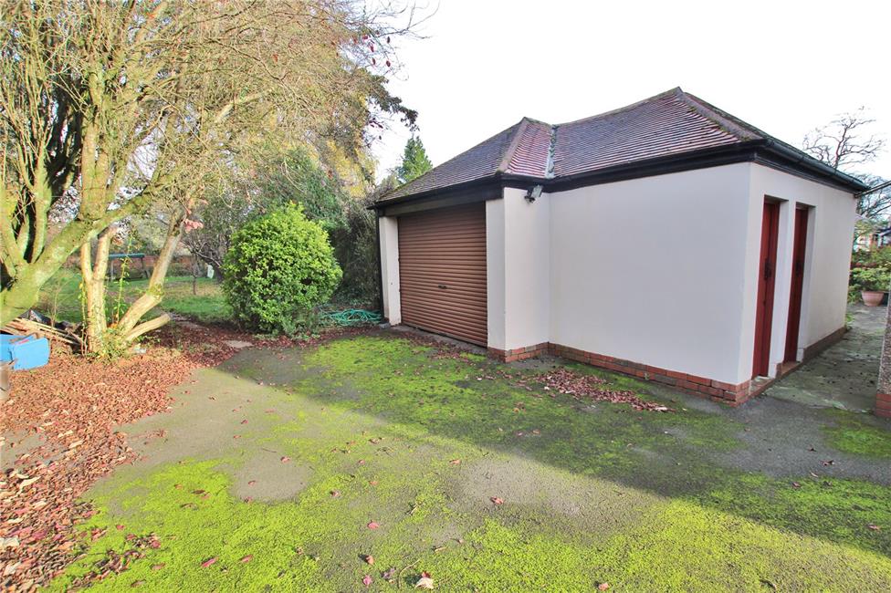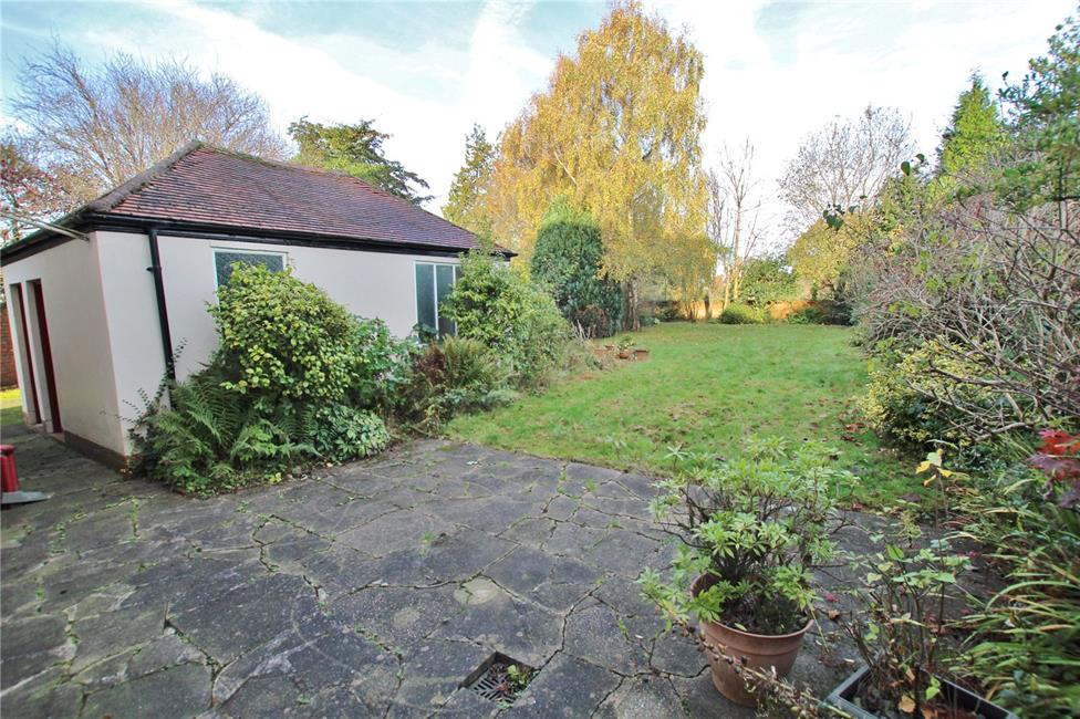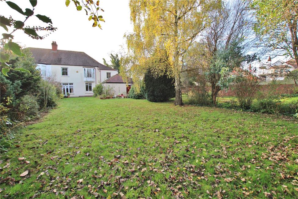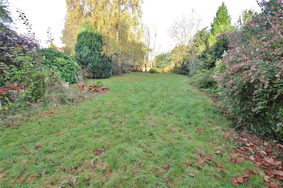 Mature, delightful lawned gardens enjoying privacy and an open aspect, kitchen garden, backing onto playing fields. Long 96ft driveway, large garage and stores.