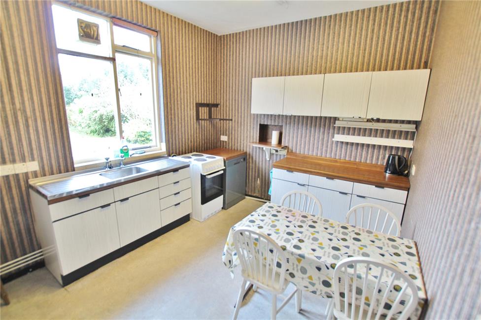 With a range of base and eye level cupboards, round nosed work surfaces, stainless steel sink with double drainer, pleasing aspect to rear garden, ample space for breakfasting table, double radiator, deep pantry store.