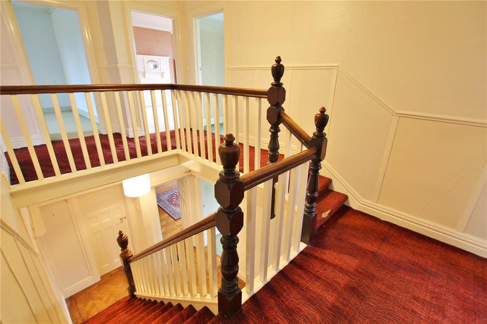 Entrance vestibule, large reception hall with galleried landing, cloakroom, bay fronted 19ft Drawing room, magnificent oak panelled dining room, feature fireplace, French doors, bay fronted sitting room, kitchen/breakfast room, laundry, second w.c. 5 good sized bedrooms, bathroom with separate WC. Retaining much charm and character including restored coloured leaded light windows, woodblock floors and tall corniced ceilings. Gas central heating.