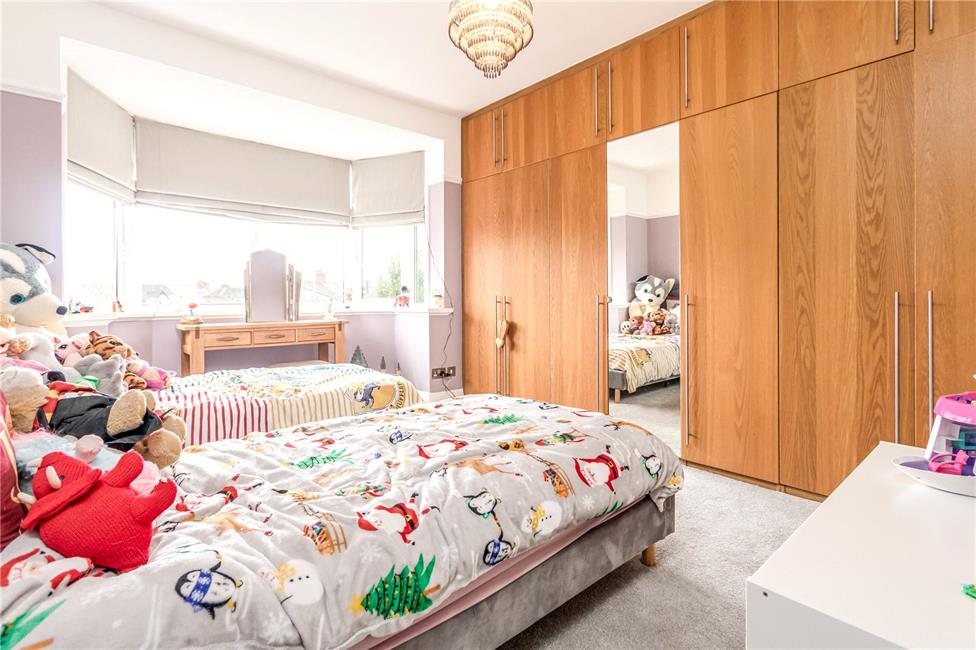 Overlooking the entrance approach enjoying wide views, range of fitted wardrobes to one side, panelled radiator.