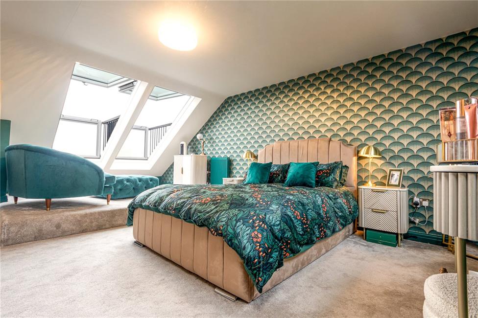 Truly impressive having Velux roof balconies, enjoying wide views to the city and coast line, panelled radiator, range of fitted wardrobes along two sides, dormer window with aspect to rear, additional panelled radiator.