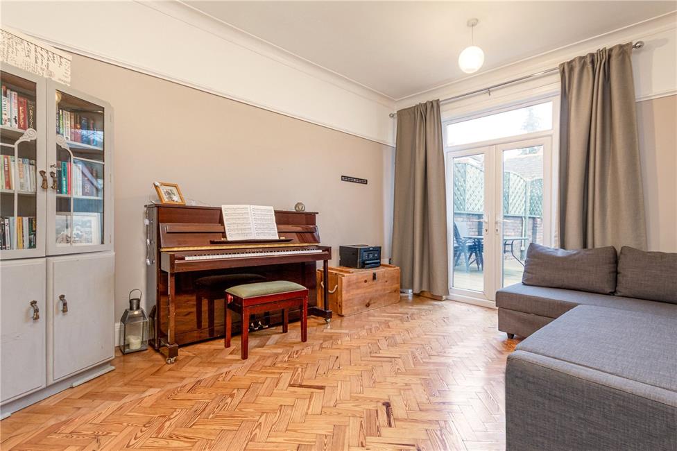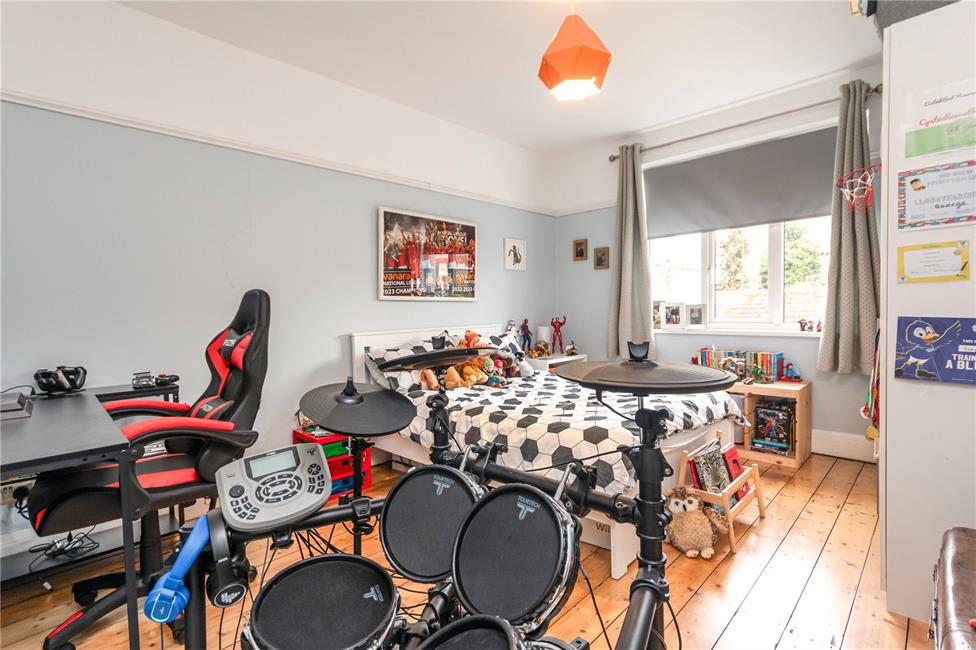Feature bay to front overlooking the tranquil tree lined avenue, contemporary oak fire surround with slate hearth and living flame coal effect gas fire, panelled radiator, coved ceiling, picture rail, woodblock flooring.