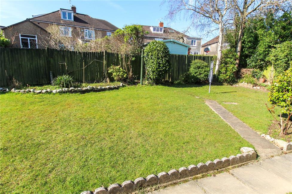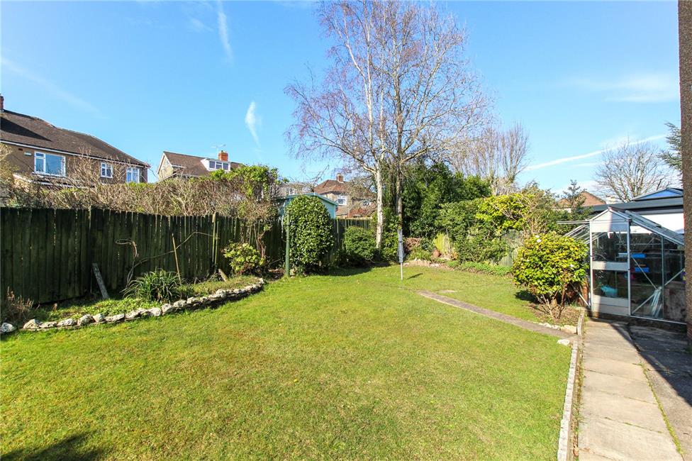 Laid to lawn, of good width, with shrub and rockery borders, enjoying sunlight, being south-west facing. Ornamental gate to side leading to drive. Aluminium greenhouse. Timber garden shed. Additional metal gate to side.