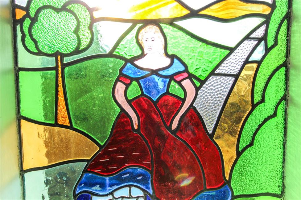 Approached by an easy rising quarter turning staircase with newel post and spindle banister, original leaded light coloured window to front, access to loft, wall plate rack.