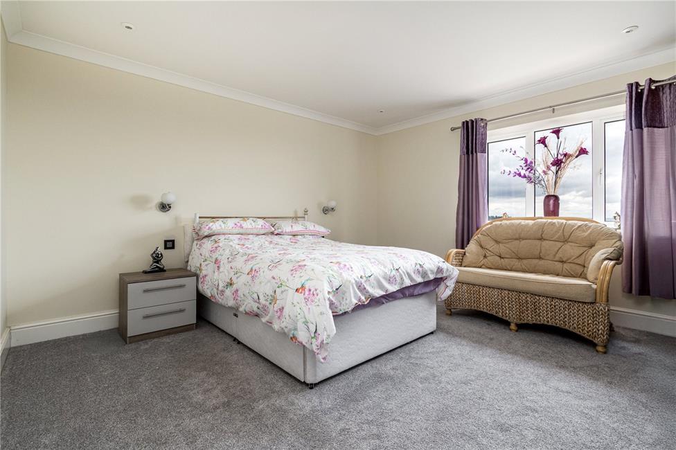 With Juliette balcony and inward opening French doors, French door to large balcony area enjoying views to the rear garden, countryside fields and coastline to the fore, coved ceiling.