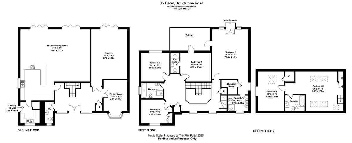 Grand reception hall, galleried landing, cloakroom, 25ft lounge, dining room, magnificent 31ft fitted kitchen/family room, quartz worktops with integrated appliances, bi-folding doors, laundry room, 6 bedrooms, principal with dressing room and en suite with rear balcony, 2 further en suites, 2 family bathrooms.