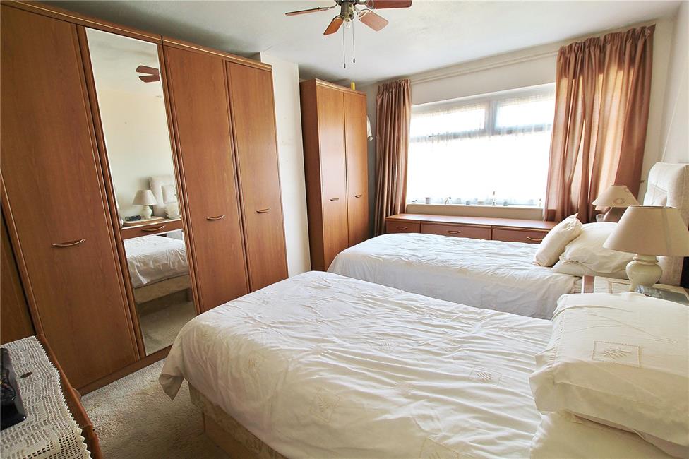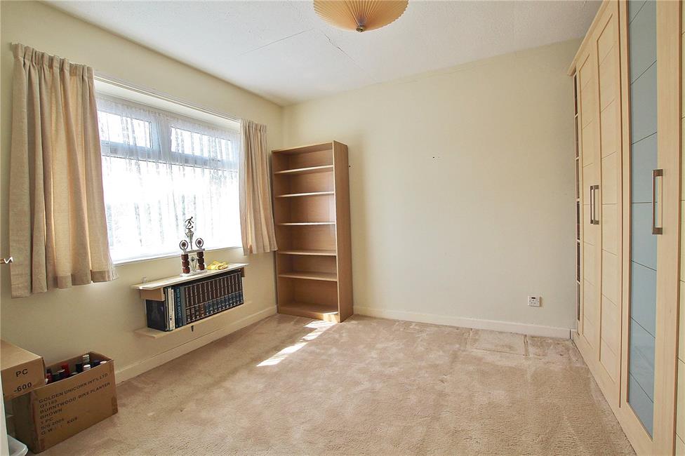 A generous third bedroom overlooking the front garden, radiator, built-in over stairs storage cupboard.