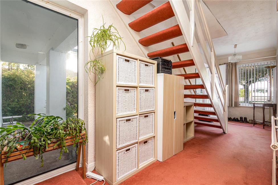 radiator, parquet flooring, open tread staircase to first floor landing,