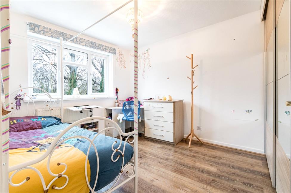 A good size third bedroom with windows overlooking the side and front quiet cul-de-sac, radiator, quality wood effect flooring.