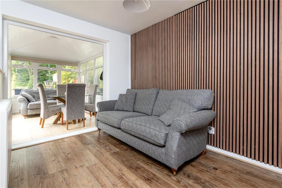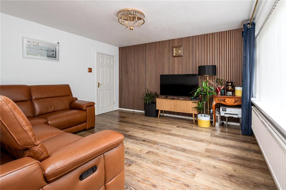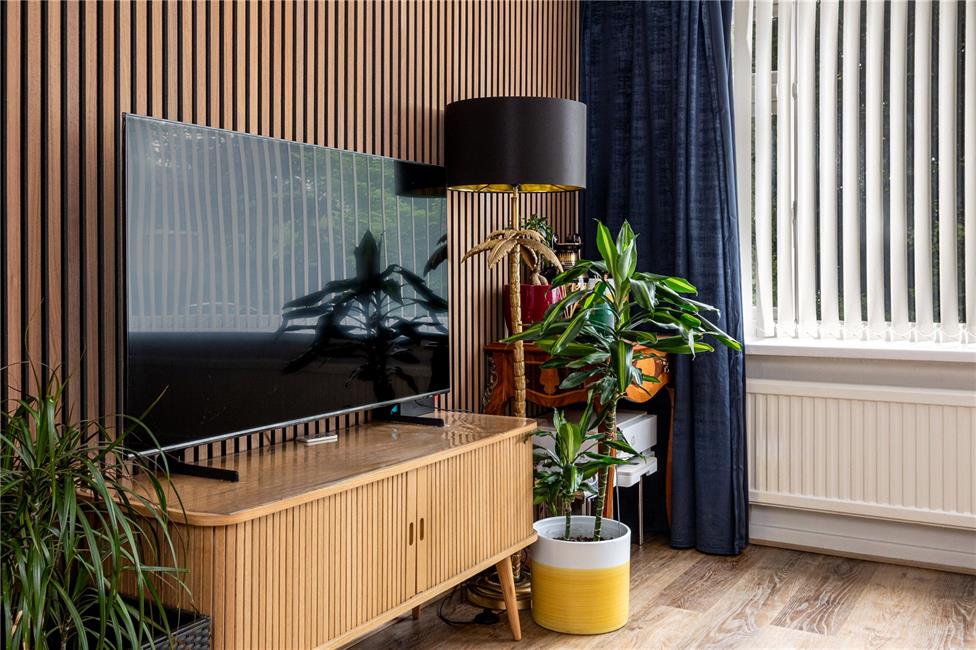 Overlooking the front drive and quiet end of cul-de-sac, large double radiator, a contemporary acoustic wall with vertical strip timber and sound proofing, quality wood effect flooring, door to kitchen/diner.