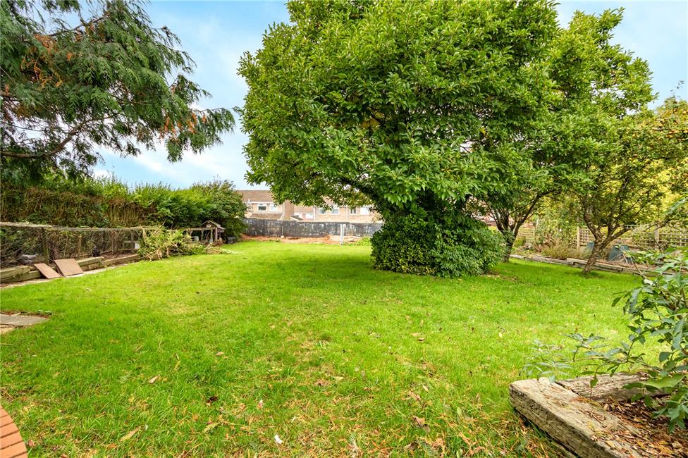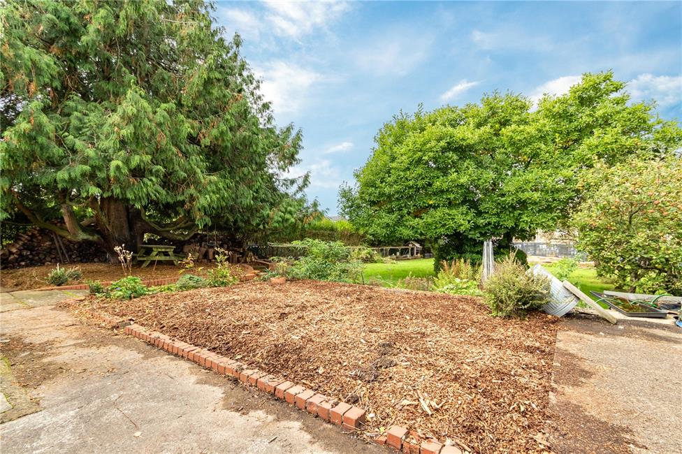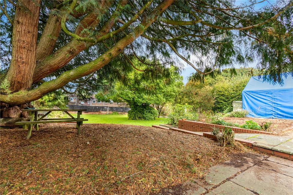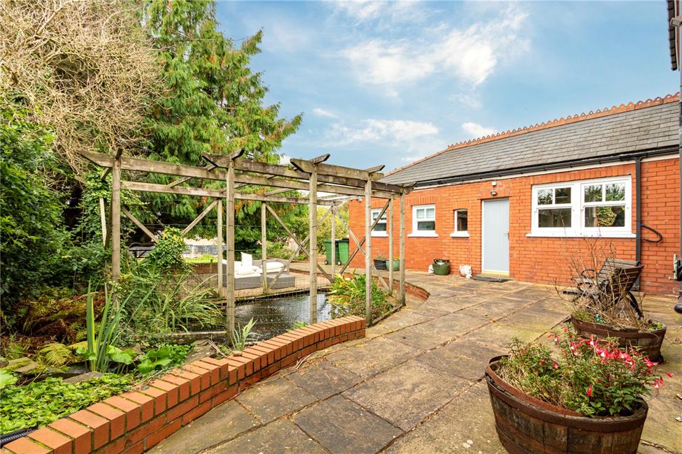 A West facing impressive rear garden. An initial flag stone style patio with one step down to a large well maintained water feature with pump and filter, security lighting, additional patio area with a small path leading down to the impressive large rear garden, raised borders, chicken coops, storage shed, central magnolia tree, various further fruit trees with large conifer, outside water tap, concrete plinth behind the double garage, access through the garage.