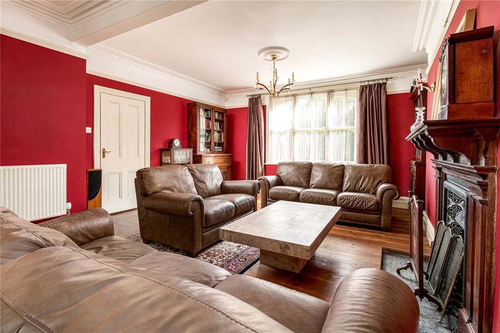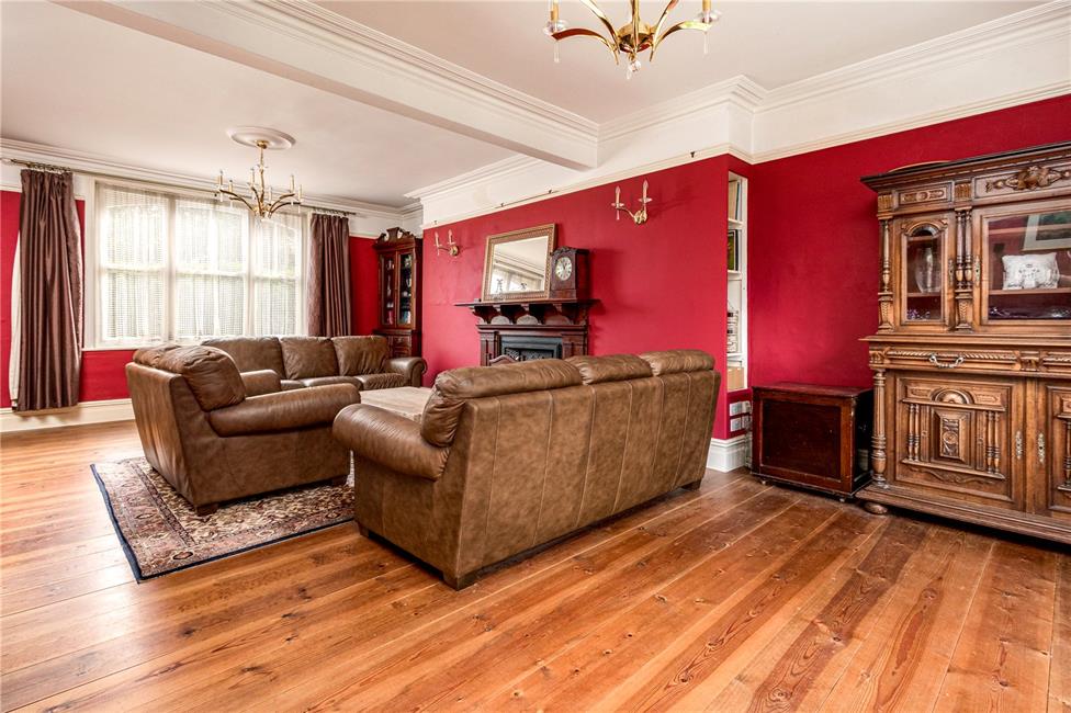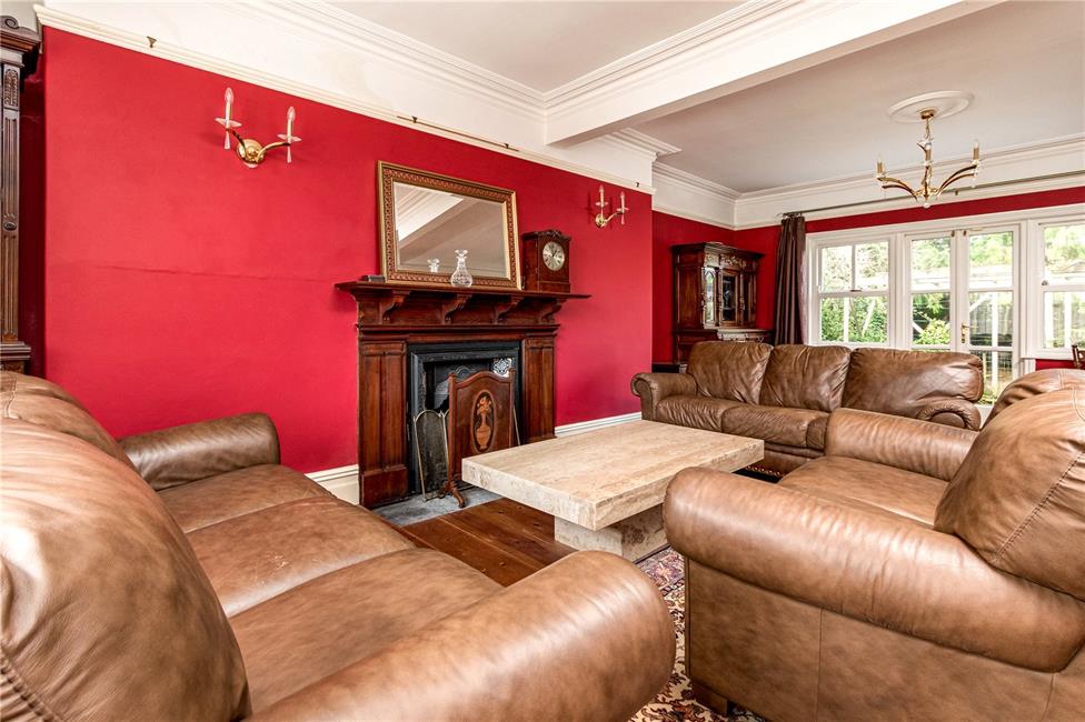 Approached via double doors, sash windows to the side overlooking the driveway, radiator, coved ceiling, high level skirting boards, door to the kitchen.