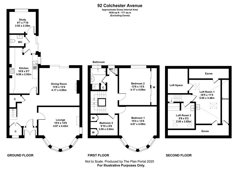 Loft Room 2 9'8" (2.95m) x 9'3" (2.82m) into sloping ceilings.