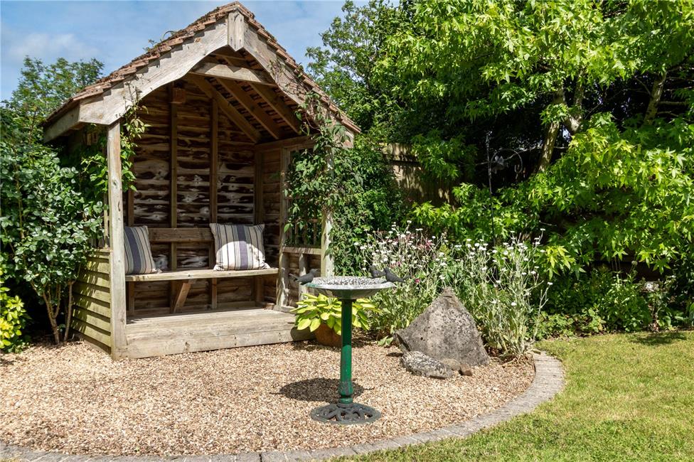 A superb and unique garden offering arguably possibly the largest plot on the site, with a large shaped central lawned area bordered with beautifully manicured plants, trees, flowers, rose beds, etc. A full width shaped paved patio continuing to both sides, a further circular patio positioned in the corner (6 seating area in total), outside lighting, outside water tap, further large area to the side behind the double garage, additional block paved pathway and relaxation area, with further area laid to lawn and slightly raised floral area laid with stone chippings and integrated beautifully presented planting and flowers. Feather edged timber panel fencing, additional lighting to the side, gated access from the front.