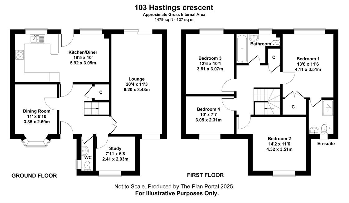 Entrance hallway, cloakroom/WC, study, dual aspect lounge with patio doors to the rear garden, dining room, 19ft kitchen/diner, 4 double bedrooms, en suite shower room and a family bathroom.