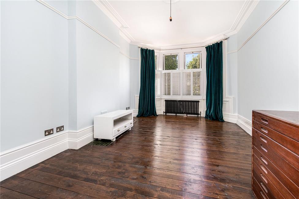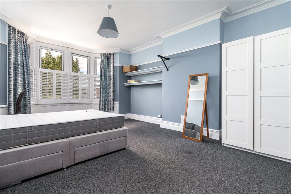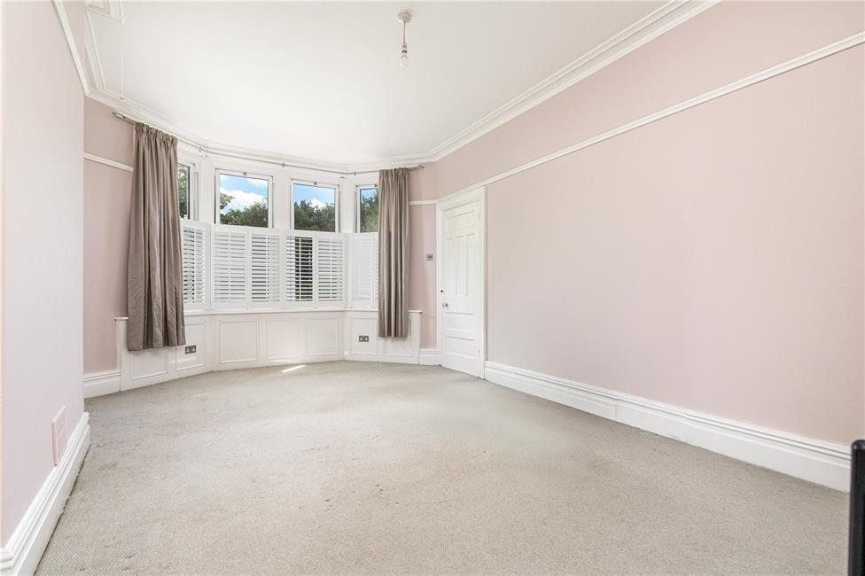 Aspect to front, colonial style shutters, double panelled radiator, bespoke book shelving.