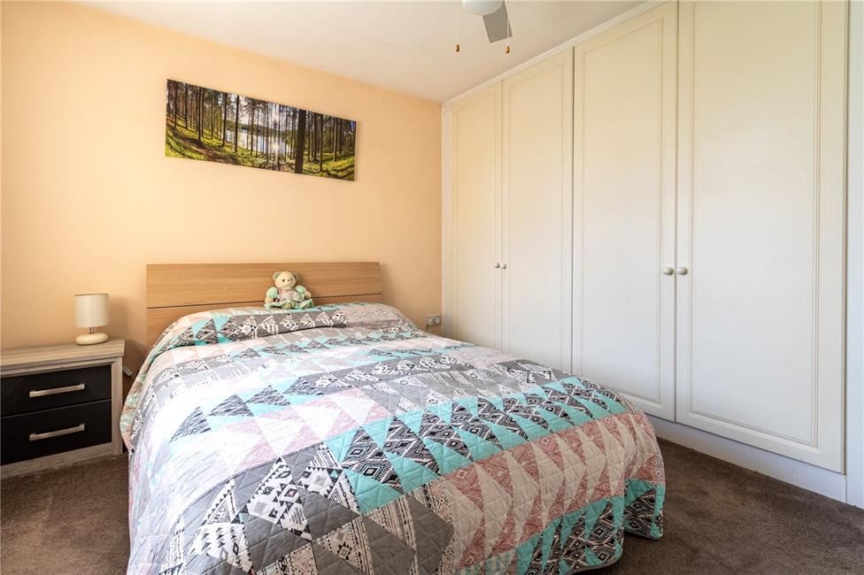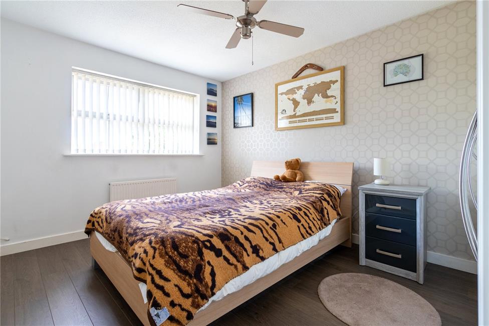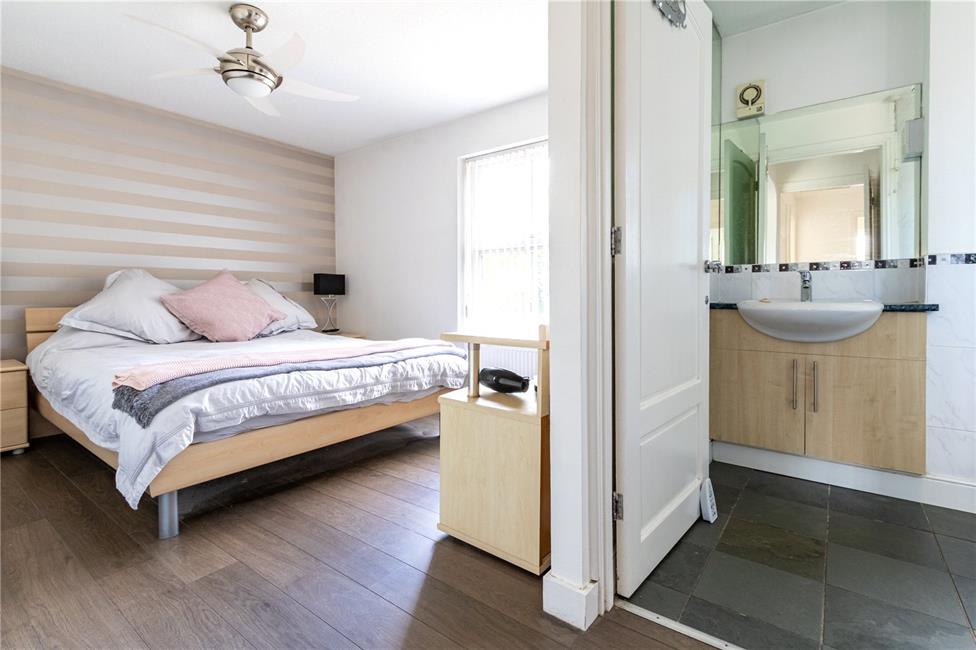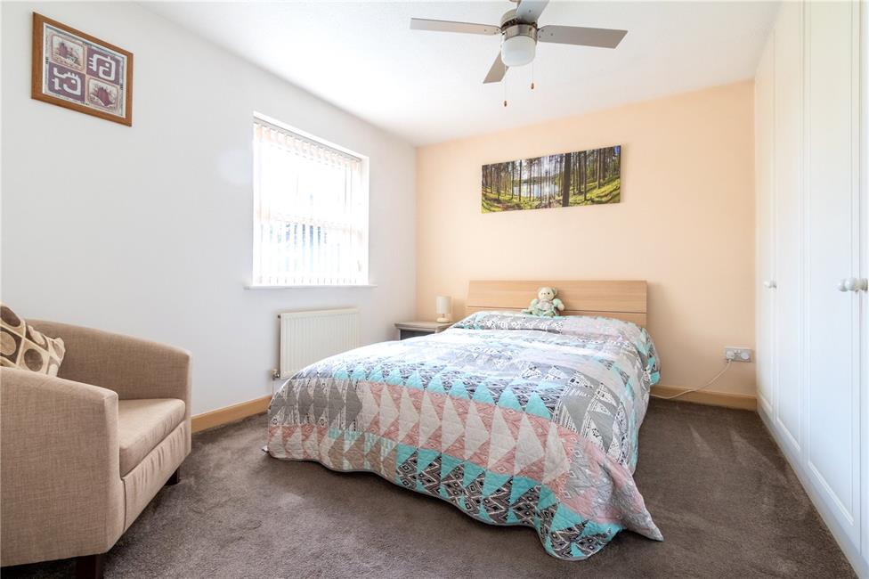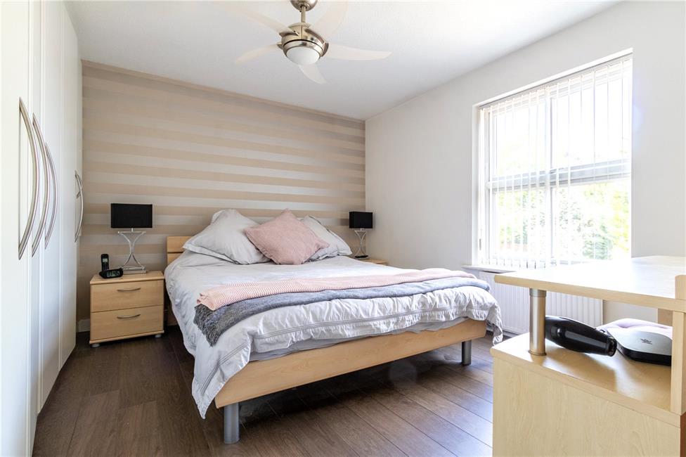 Overlooking the entrance approach, range of fitted wardrobes to one side, panelled radiator, quality flooring.