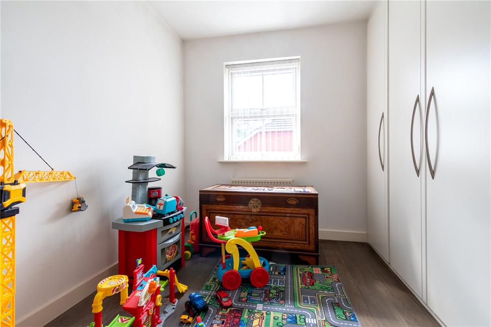 Overlooking the rear garden, range of fitted wardrobes to one side, quality flooring, panelled radiator.