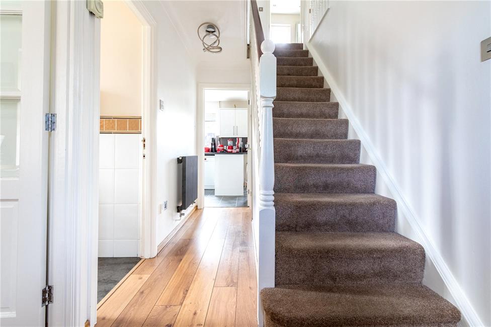 Approached by a composite secure front door with decorative double glazed inserts to upper part, leading onto a central hallway with single flight staircase to first floor level, stylish radiator, quality flooring, deep storage cupboard under stairs recess.