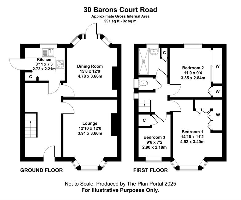 through the next set of traffic lights with Waterloo Road and thereafter take the third turning left into Barons Court Road,whereby the property will be found a short distance on the right hand side.